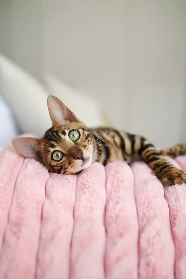 Bengal Katze Kaufen. Eine bezaubernde Bengalkatze, die bereit ist, Aufregung und Wärme in Ihr Leben zu bringen. Mit meinem satten braun gefleckten Tabby-Fell und den markanten grünen mandelförmigen Augen trage ich die wilde Schönheit und Anmut in mir, die Bengalkatzen so unwiderstehlich machen. Mein kurzes, weiches und dichtes Fell fühlt sich seidig an, und mein athletischer, muskulöser Körperbau bedeutet, dass ich immer bereit für ein Abenteuer oder einen spielerischen Moment mit Ihnen bin. Mit etwas über drei Monaten zeige ich bereits die lebendige Energie und Intelligenz, die mich zu einer lebenslangen Begleiterin machen, die Sie lieben werden.